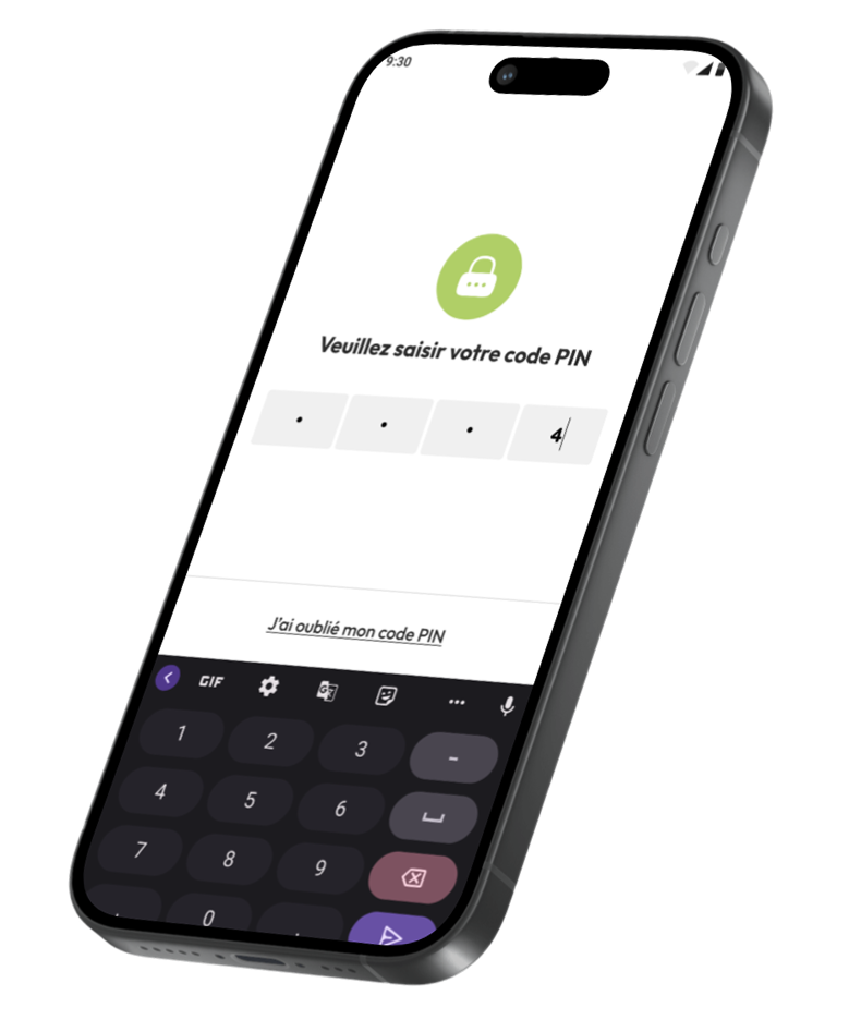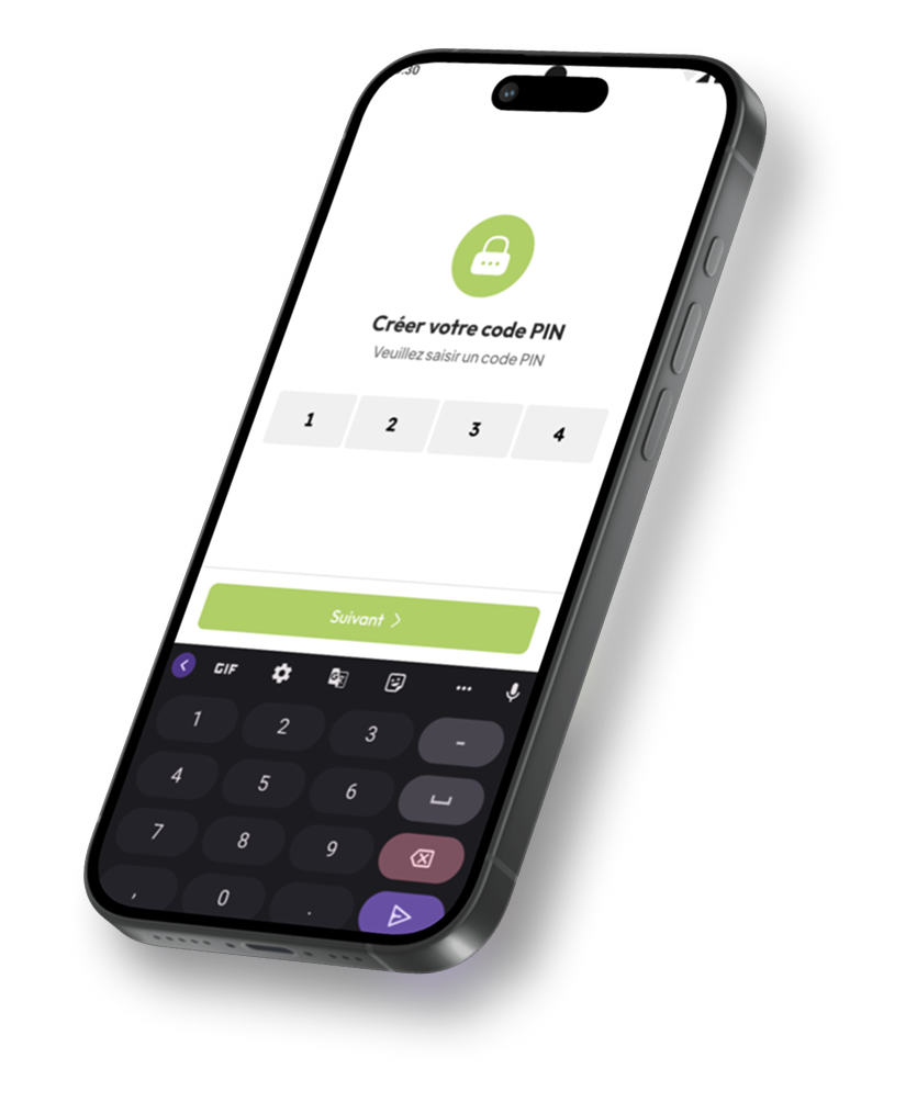 Pour sécuriser votre accès futur, définissez un Code PIN personnel à 4 chiffres. Mémorisez-le bien, car il sera votre clé de connexion rapide à l'application.